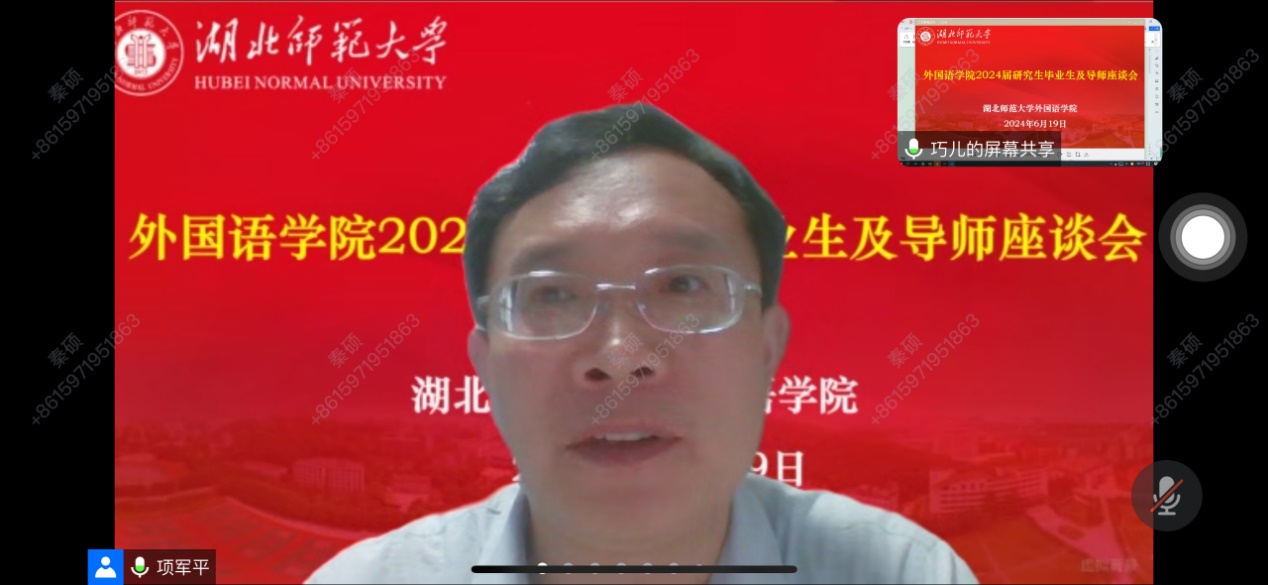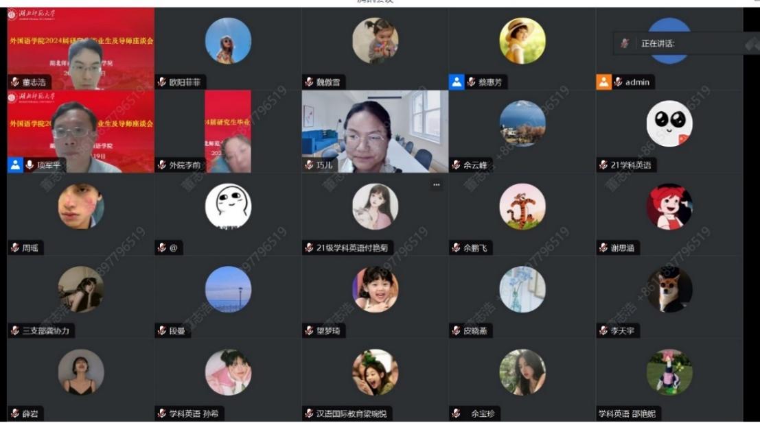 为进一步提高研究生培养质量,扎实推进研究生就业工作,成人短视频 于6月19日晚在腾讯会议成功举办了2024届硕士毕业生及导师座谈会。成人短视频 党委副书记蔡惠芳、副院长项军平、研究生办公室主任董志浩、辅导员关巧、2024届全体硕士毕业生及导师参加座谈会。会议由项军平主持。