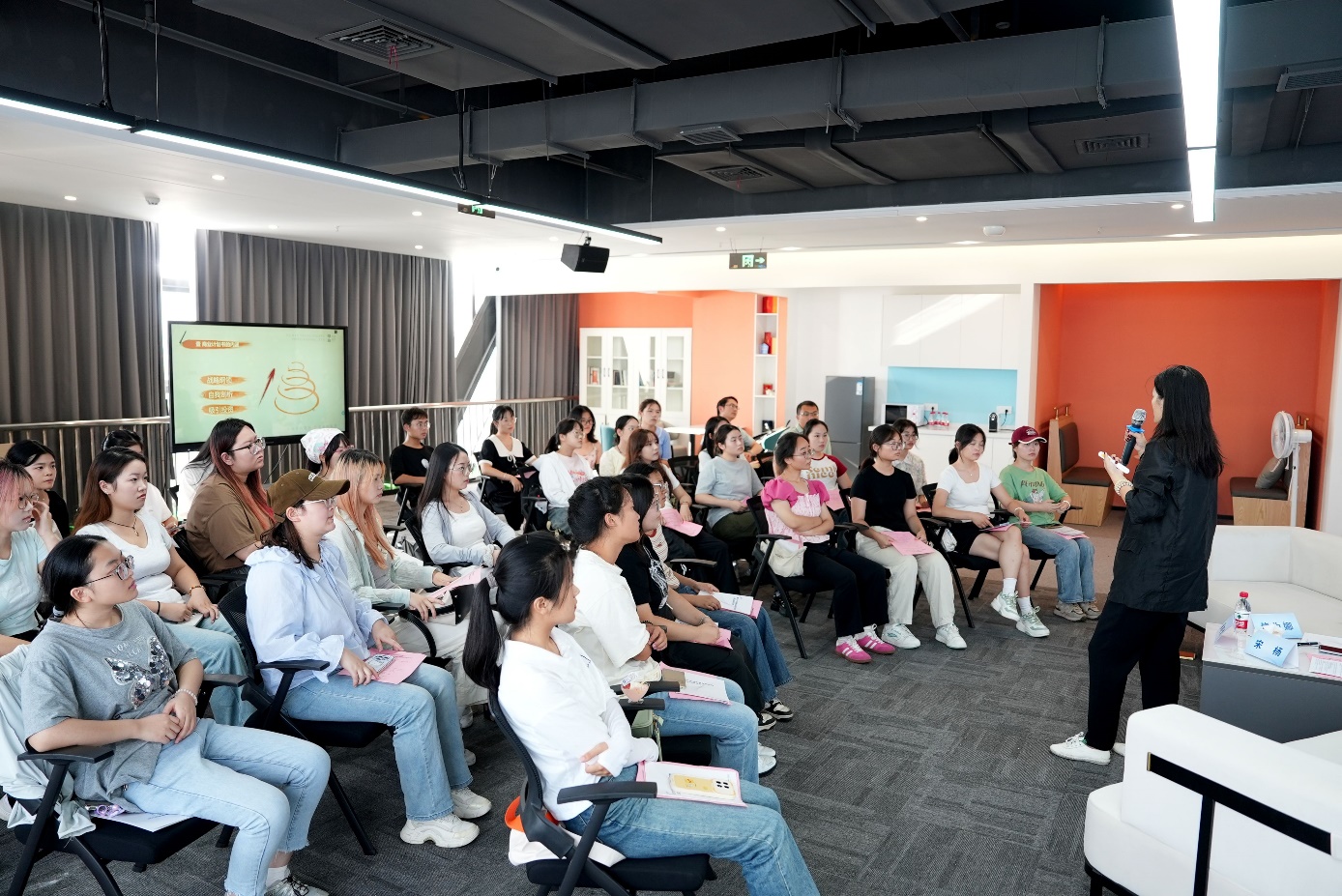 活动的第一环节,湖北中科人因智能科技有限公司总经理宋杨以“科技赋能青少年心理健康应用介绍”为主题,分别从公司背景、核心技术、当前的现状与解决方案和合作案例四个方面详细介绍了人因工程赋能学校推动协同育人的原理以及实践路径。在第二环节中,武创院黄石协同创新中心的运营总监饶为娜围绕如何高效准备中国国际大学生创新大赛,从三个核心方面展开了详尽阐述。在第三个环节的交流答疑过程中,同学们积极与两位老师进行了深入的互动交流。他们围绕自己的生活经历、对讲座内容的理解及感悟,提出了诸多问题与见解,两位老师耐心倾听,并给予了详尽的解答与指导,现场氛围热烈融洽。