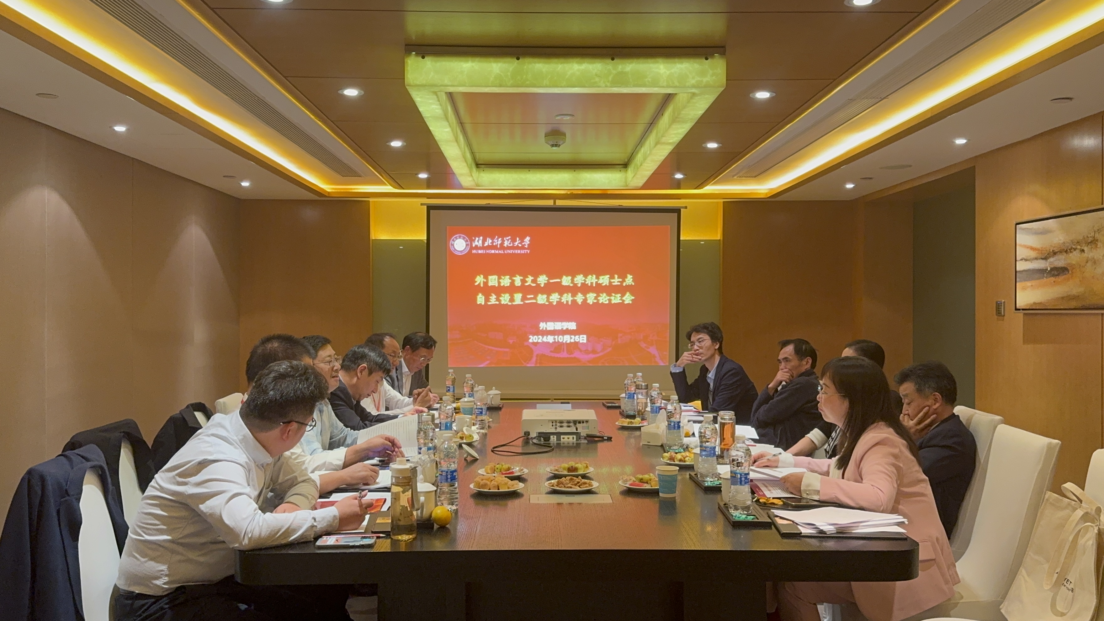 2024年10月26日下午,成人短视频 在闻泰花园酒店负一层会议室成功举办了外国语言文学一级学科硕士学位授权点自主设置二级学科论证会。此次论证会采取线上线下结合的方式进行,汇聚了来自学术界的多位专家,线下参加的专家包括天津外国语大学陈法春教授、西安外国语大学姜亚军教授、湖南师范大学郑燕虹教授、南开大学张文忠教授、广西师范大学谢世坚教授以及扬州大学王金铨教授等,共同论证成人短视频 二级学科的设置与发展。会议由成人短视频 院长刘敏教授主持。