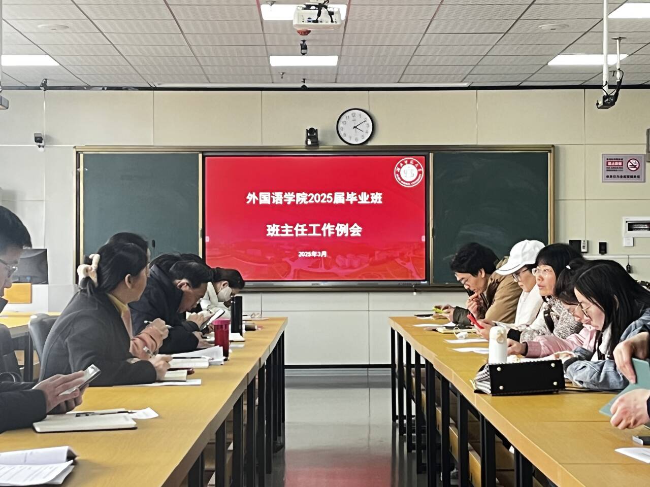 为全面落实立德树人根本任务,切实做好毕业班学生教育管理服务工作,3月6日下午, 成人短视频 在人文楼21B604会议室召开2025届本科毕业班班主任工作会议。学院党委书记王海燕、副院长项军平、朱勇进、2025届本科班班主任和全体辅导员参加会议,会议由学院党委副书记蔡惠芳主持。