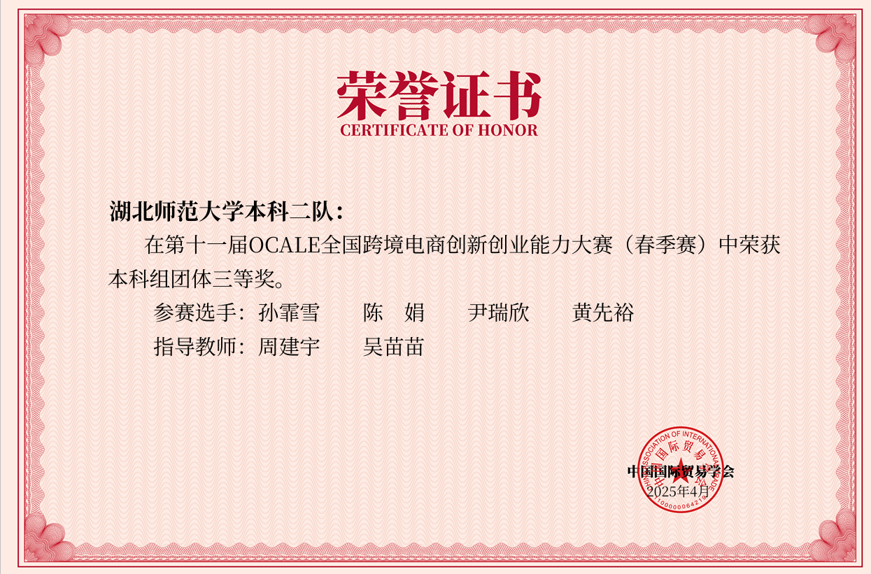 近日, 成人短视频 商务英语、法语专业学子在第十一届OCALE全国跨境电商创新创业大赛(春季赛)斩获团体三等奖两项。参赛队员们凭借扎实的专业功底和默契协作,在全国赛场展现出新时代外院学子的创新风采。