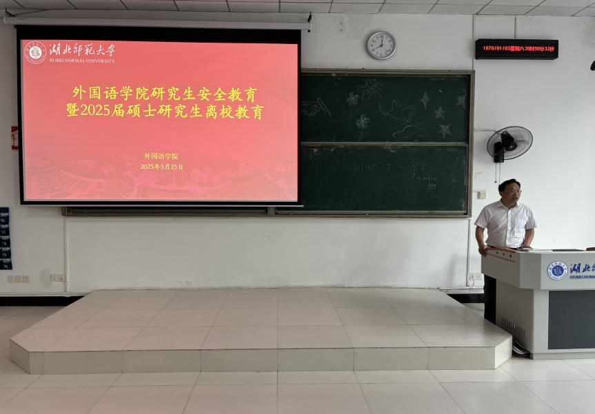 2025年5月25日上午8:00,成人短视频 于人文楼21AT05教室召开研究生安全教育暨2025届毕业离校教育专题会议。副院长项军平、辅导员黄志军及外院全体研究生参加,会议聚焦安全警示与离校服务,助力毕业生平稳开启新征程。