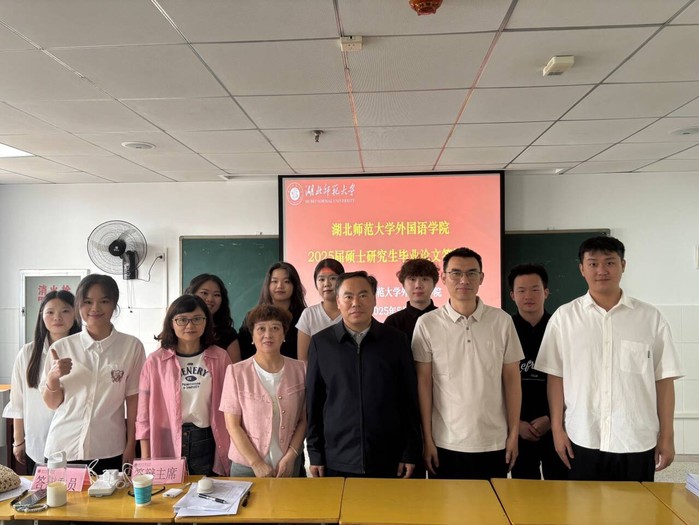 湖北师范大学成人短视频 于2025年5月25日星期日在人文楼B座6楼研究生实训室成功举办2025届外国语言文学专业硕士研究生毕业论文答辩会。本次答辩会涉及语言学、文学理论等多个研究方向,共有9名毕业生参与答辩。本次答辩会邀请了华中师范大学成人短视频 博士生导师柯贤兵教授(博士生导师)担任答辩委员会主席,成人短视频 郑桃云教授、张小胜副教授,赵凯副教授作为答辩委员参与答辩会。