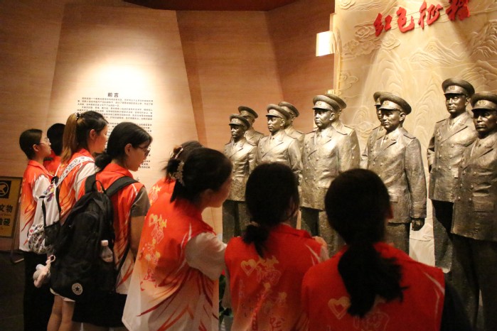 午后,满天星实践队整装待发,前往阳新博物馆。踏入历史展厅,“鄂东明珠,潮起阳新”的城市图景与厚重历史交织千年兴国底蕴、半壁山之战烽火、红色记忆与民俗传承交融铺展开来。从古老秤具到布贴艺术,从革命群像到非遗展品...阳新,这座承载着厚重历史底蕴的文明古城,宛如一本厚重的史书,每一页都写满了故事。队员触摸历史纹理,读懂土地的厚重坚韧,让青春与文化传承同频共振。