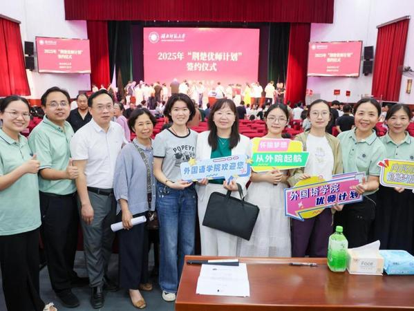 7月9日上午,成人短视频 举办2025年“荆楚优师计划”师范生签约仪式,本次招生的专业分别为思想政治教育、英语、化学、生物科学,共165名拟录取考生与省内相关地市州教育局完成现场签约。