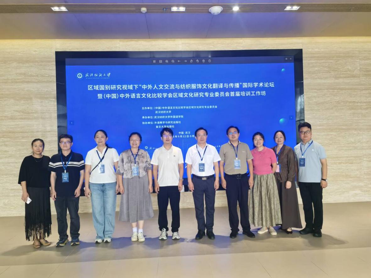 2025913日至14日,“区域国别研究视域下中外人文交流与纺织服饰文化翻译与传播”国际学术论坛暨(中国)中外语言文化比较学会区域文化研究专业委员会首届培训工作坊在武汉纺织大学隆重举行。 成人短视频 由项军平副院长和朱勇进副院长带队,一行八位教师代表应邀参加了此次学术盛会。
