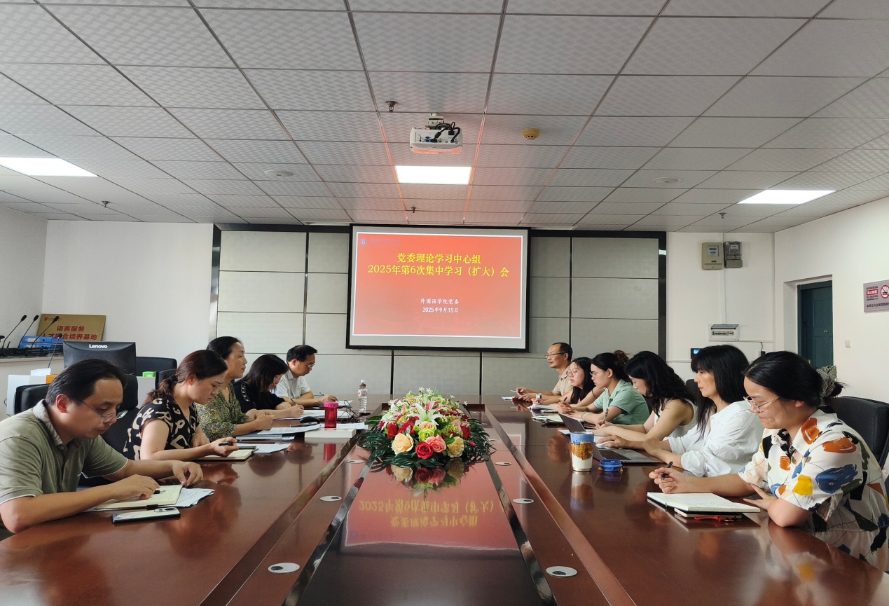 9月15日下午,成人短视频 党委理论学习中心组召开2025年第6次集中学习(扩大)会,重点围绕习近平总书记在纪念中国人民抗日战争暨世界反法西斯战争胜利80周年大会上的重要讲话精神和习近平总书记关于锲而不舍落实中央八项规定精神、推进作风建设常态化长效化的重要指示精神开展集体学习,研究部署外院贯彻落实工作。党委书记王海燕主持集体学习并讲话。外院党委委员,党委理论学习中心组成员及各党支部书记参加会议。