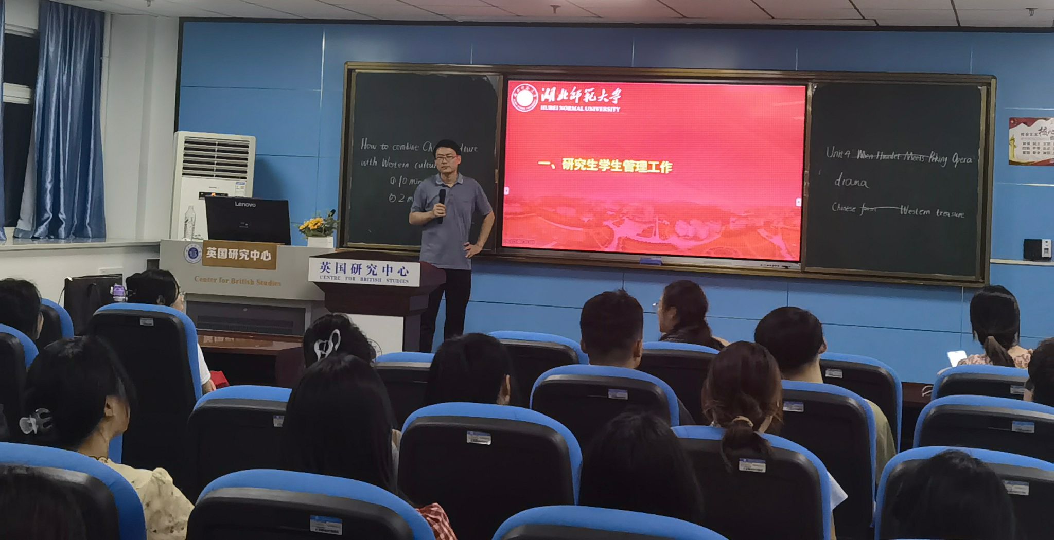 师生见面会结束后,在21B602继续举行成人短视频 硕士研究生导师培训会。会上,刘敏院长强调了毕业论文质量和就业工作的重要性,并进行指导。与此同时,成人短视频 2025级研究生新生在人文楼21B404继续参加学院组织的研究生新生入学教育。副院长项军平就树立家国情怀、坚守学术诚信、培养学术能力、提升外语水平和全面发展自己等方面对同学们提出了殷切期待和指导。辅导员黄志军就研究生日常管理、行为准则提出了要求,并强调了近期的重点工作。
