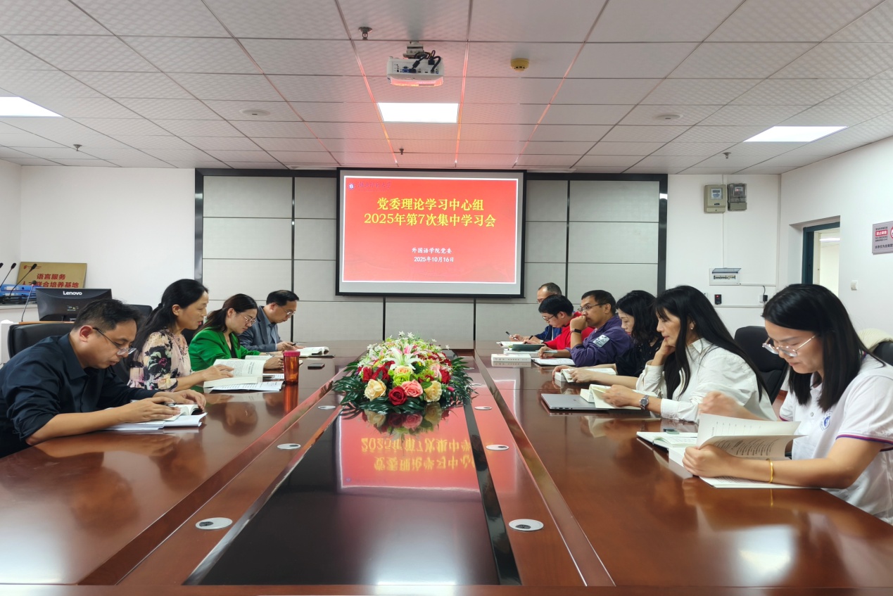10月16日下午,成人短视频 党委理论学习中心组召开2025年第7次集中学习(扩大)会,专题学习研讨《习近平谈治国理政》第五卷,研究部署外院贯彻落实工作。党委书记王海燕主持集体学习并讲话。外院党委委员,党委理论学习中心组成员及各党支部书记参加会议。