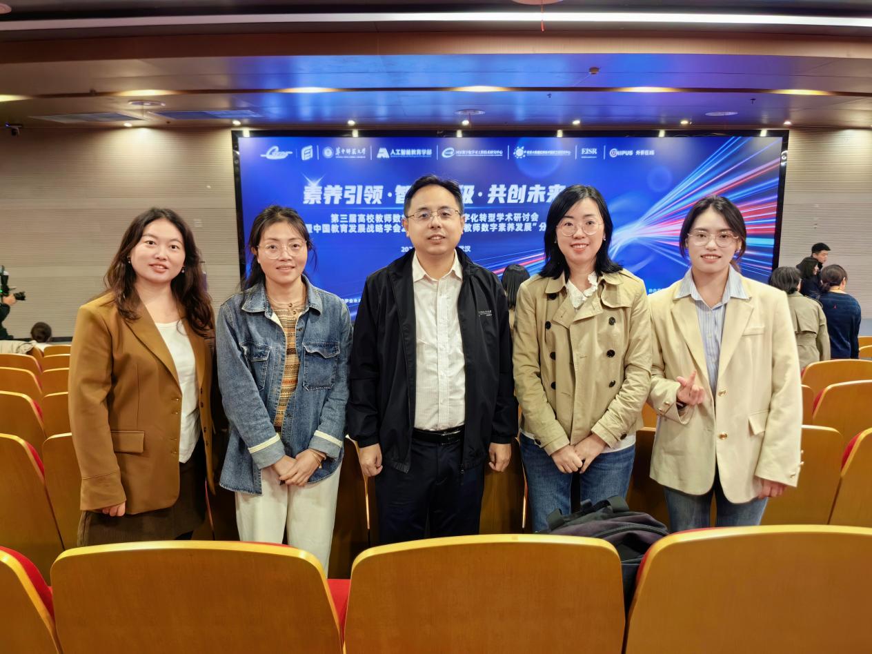 2025年10月19日,“素养引领·智能升级·共创未来——第三届高校教师数字素养发展与数字化转型学术研讨会”在武汉华中师范大学(南湖校区)隆重举行。 成人短视频 由朱勇进副院长带队,一行五位教师代表——刘瑶瑶、阮迢、吴苗苗、罗兰等老师应邀参加了此次学术盛会。