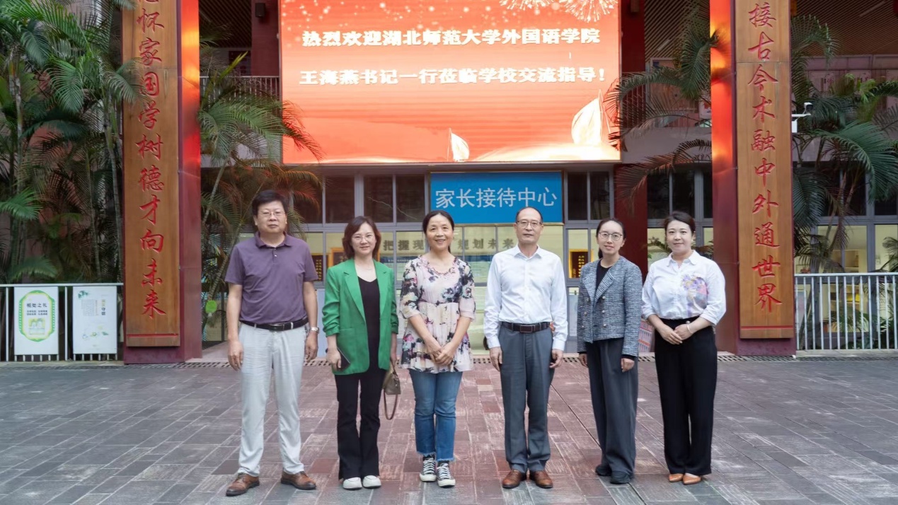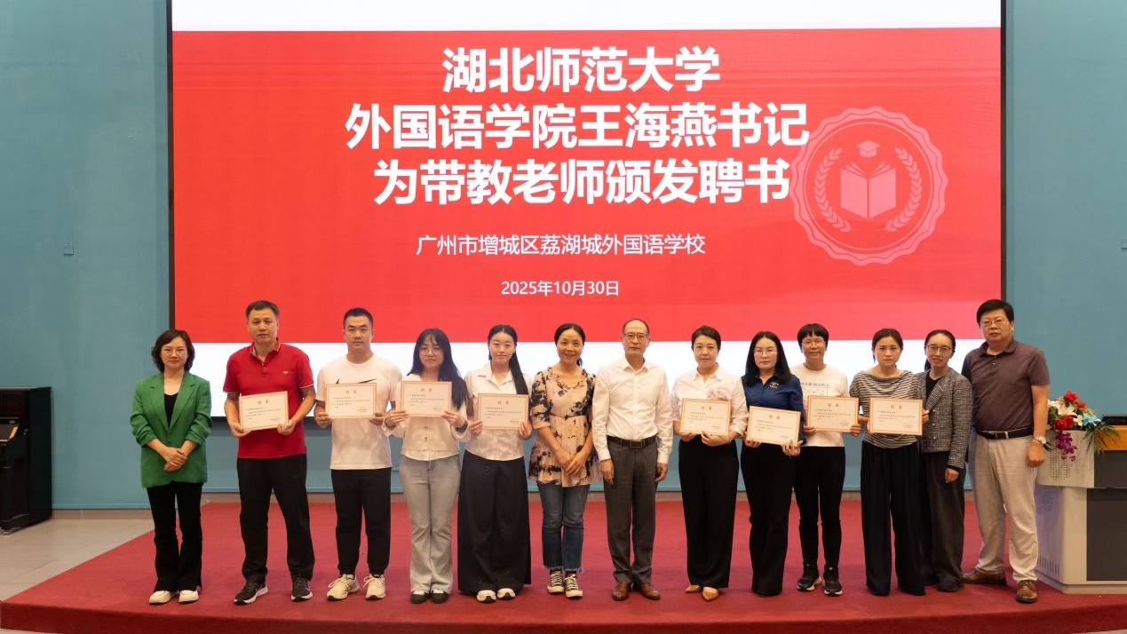在荔湖城外国语学校,校长陈百锁、副校长宋爽、校长助理陈立等领导老师陪同参观了该校特色教学与创作实验基地及第二课堂,重点介绍了荔湖城外国语学校的办学情况和经验做法。王海燕代表学校为该校实习指导老师颁发聘书。陈君丽老师还受邀为该校七年级全体学生做了一场关于英语学习的精彩讲座,受到师生的热烈欢迎。
