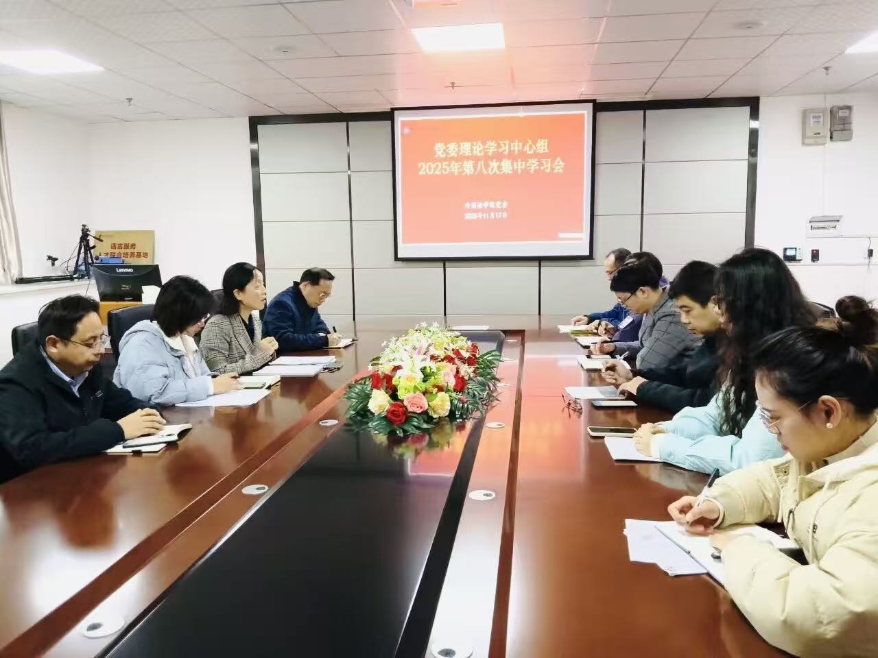 11月17日下午,成人短视频 党委理论学习中心组召开2025年第8次集中学习(扩大)会,专题学习党的二十届四中全会精神,研究部署外院贯彻落实工作,党委书记王海燕主持集体学习并讲话。外院党委委员,党委理论学习中心组成员及各党支部书记参加会议。