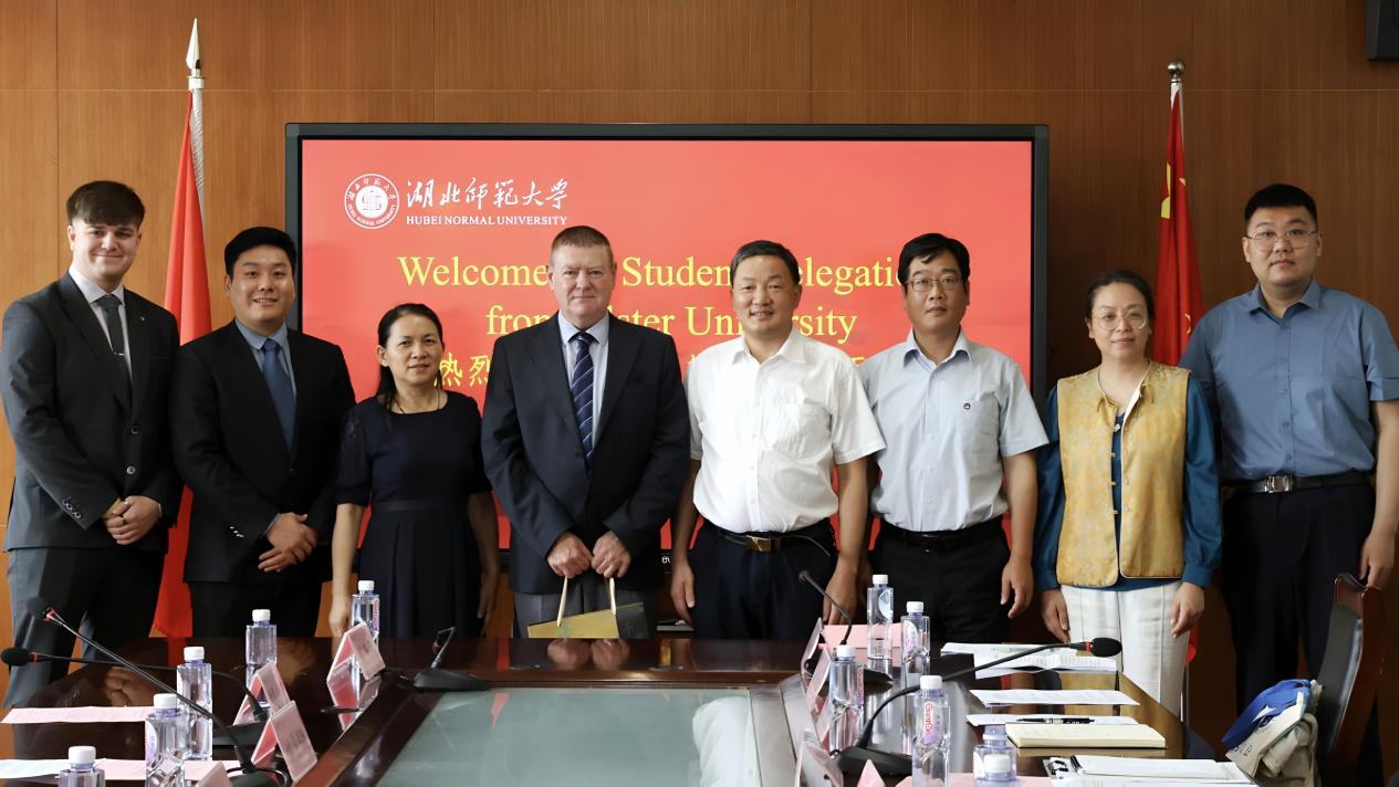 近日,英国奥斯特大学师生代表团一行29人访问 成人短视频 ,在黄开展为期一周的文化交流活动。此次活动旨在深化两校友好关系,促进中英青年相互理解,推动教育国际化与文明互鉴。6月3日上午,学校在科技大楼为代表团举行欢迎仪式。校党委副书记、校长雷儒金,黄石市委外办副主任易静平,奥斯特大学教师代表及 成人短视频 相关学院负责人出席仪式。仪式由国际交流合作处处长龚波主持。